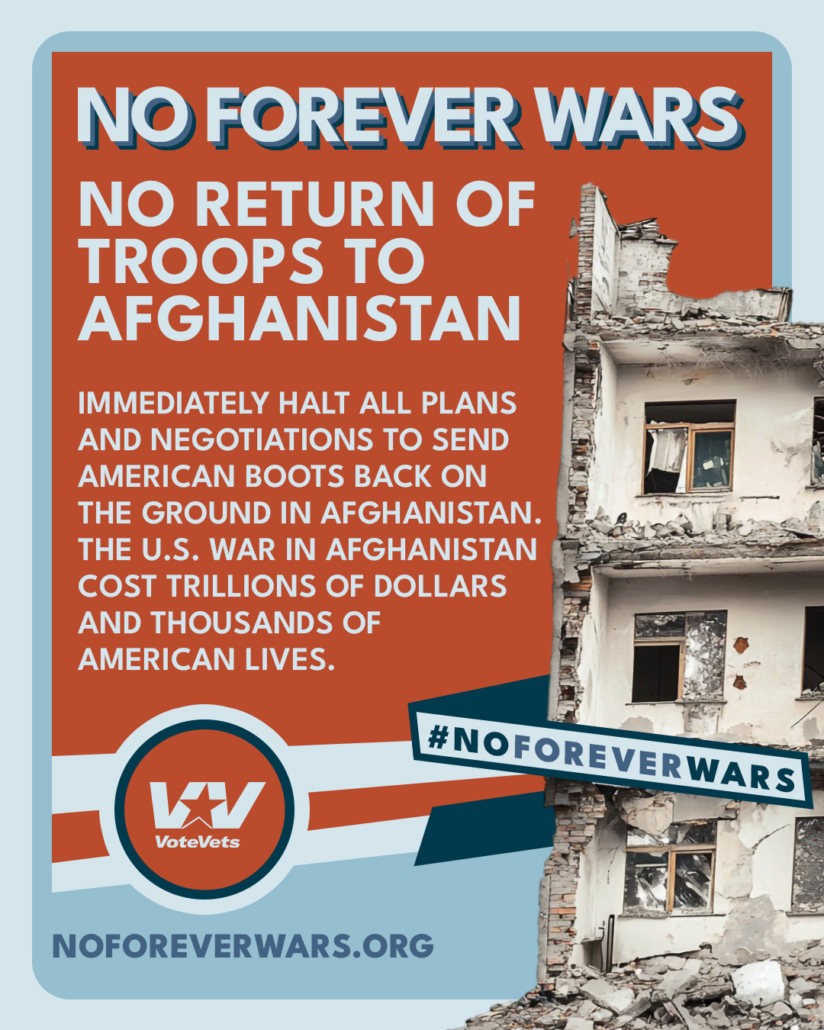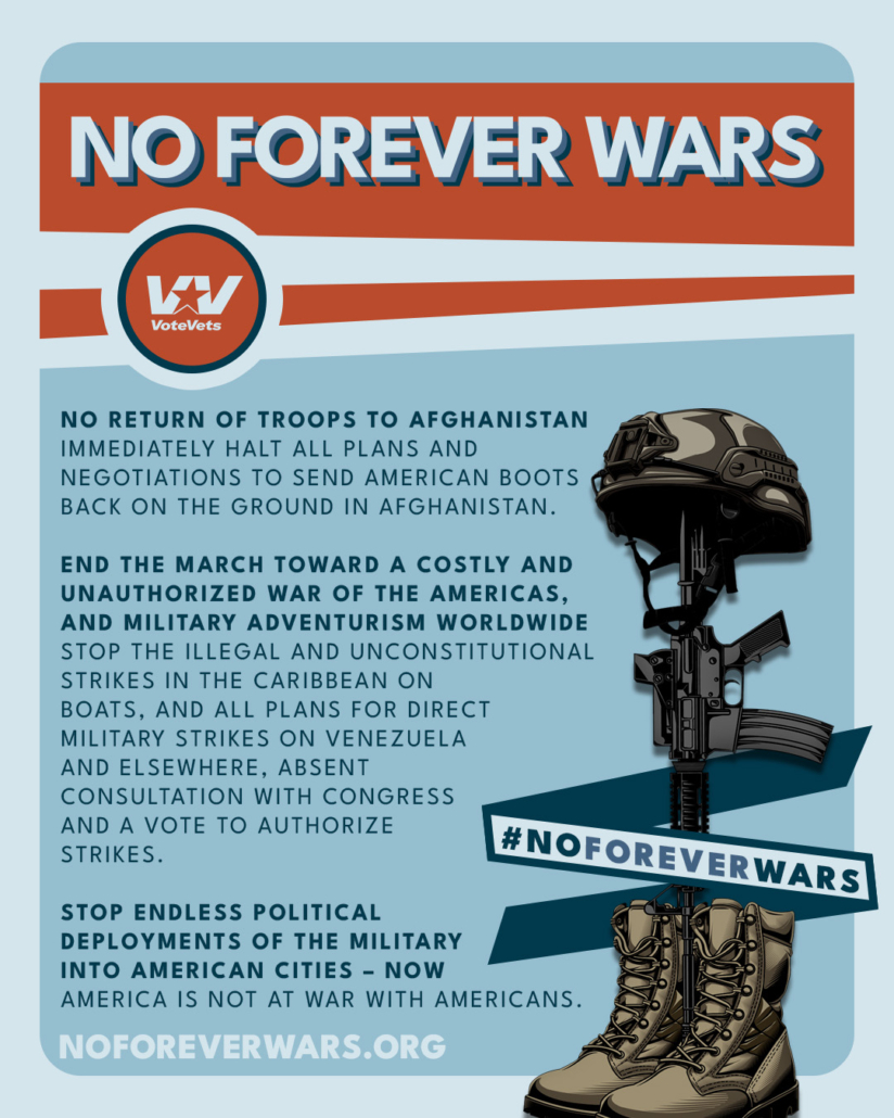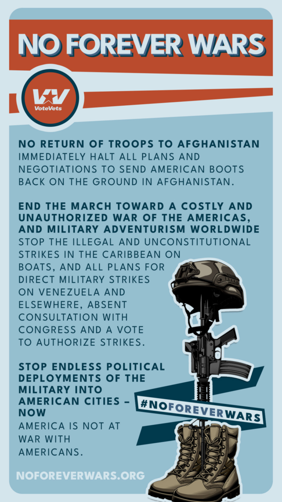 We didn’t vote for endless wars in Iraq or Afghanistan. We won’t stand for it now. Veteran leaders are demanding an end to military adventurism. #NoForeverWars