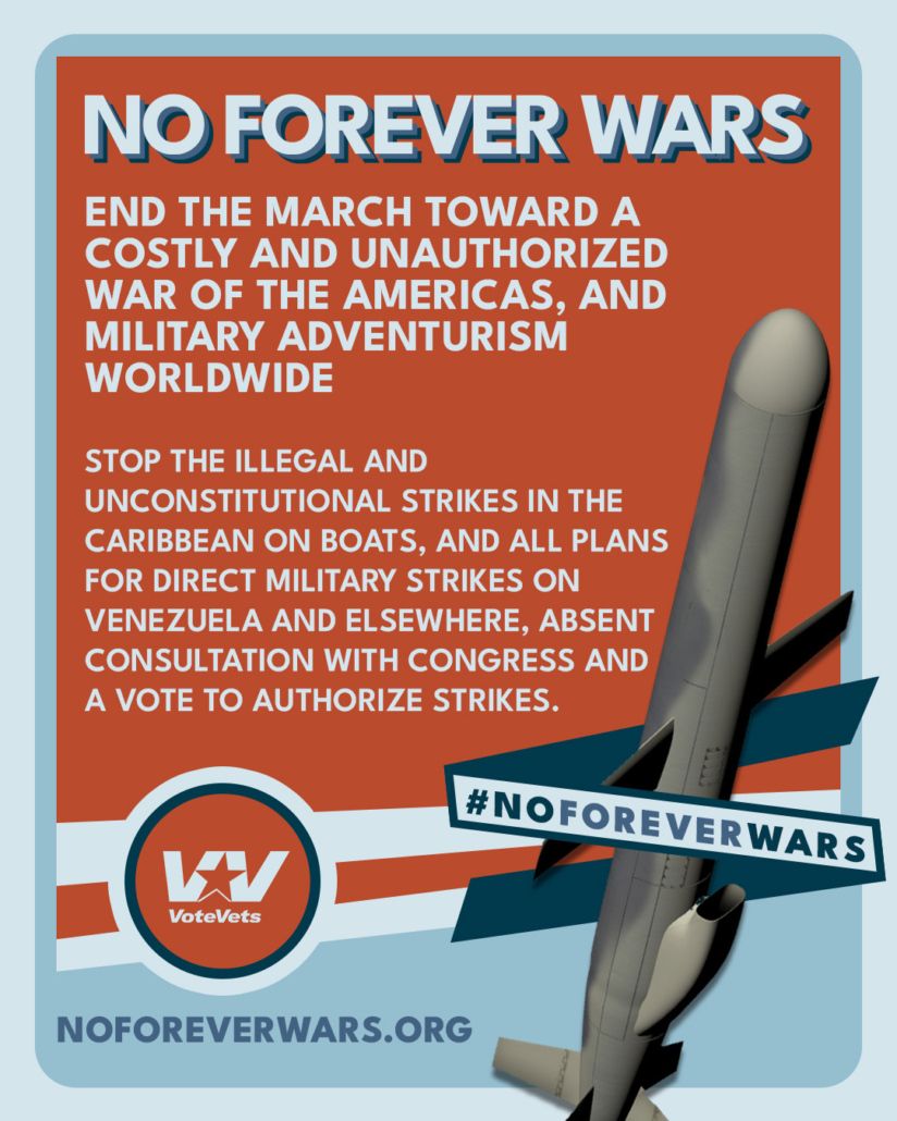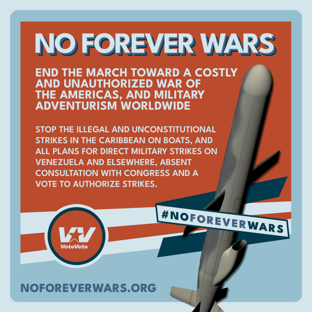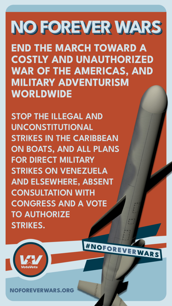 Stop the costly, unauthorized “War of the Americas” and worldwide military adventurism. Congress must vote. No more executive warmaking. #NoForeverWars