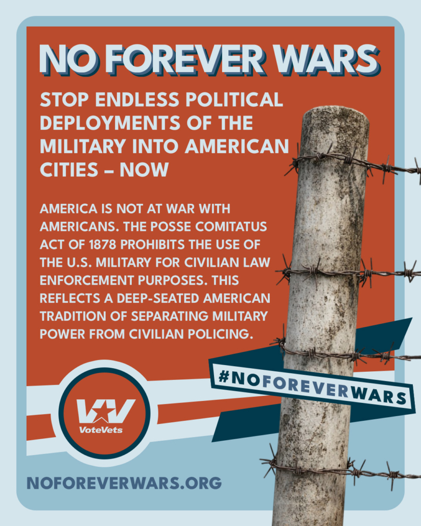 America is NOT at war with Americans. Stop endless political deployments of the military into our cities immediately. Keep our troops out of domestic politics. #NoForeverWars